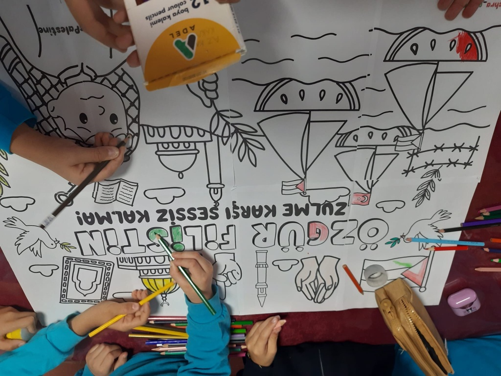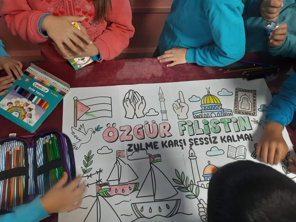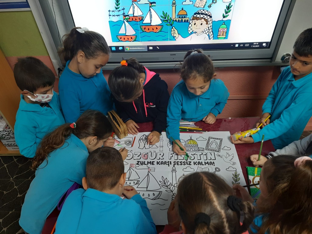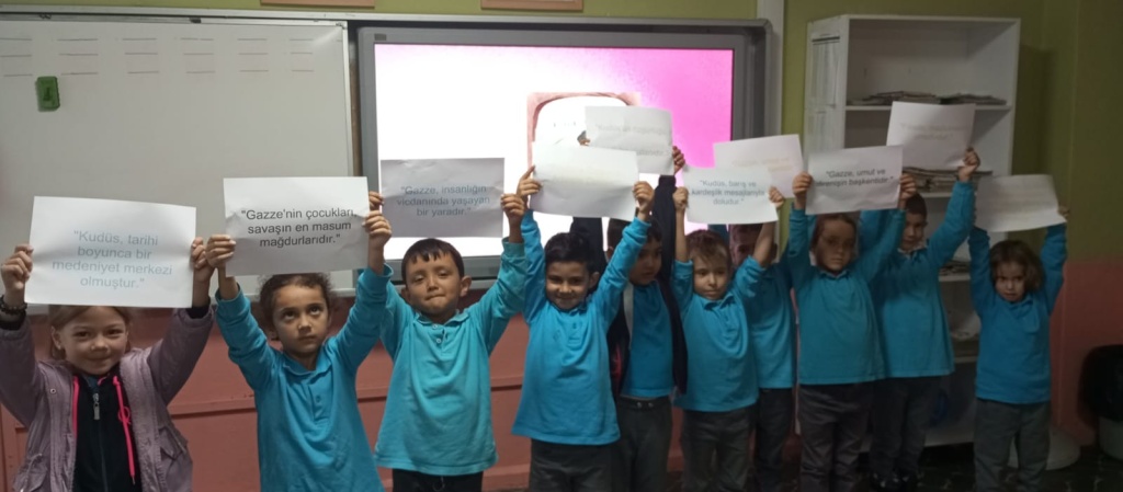 Milli Eğitim Bakanımız Sayın Yusuf TEKİN'in Milli Eğitim Bakanlığı olarak göndermiş olduğu yazı doğrultusunda okulumuzda Filistin ve Gazze Temalı Etkinlikler düzenlendi. Amacımız çocuklarımıza sadece bilgi kazandırmak değil; vicdanı, adaleti ve insan olmanın sorumluluğunu da öğretmek. Çünkü insanın içindeki iyilik yeşermedikçe hiçbir bilgi meyve vermez. Türkiye Yüzyılı Maarif Modelinde yer alan "Erdem-Değer-Eylem" anlayışıyla barışa, insan haklarına ve evrensel değerlere saygılı bir nesil yetiştirmeye kararlıyız.